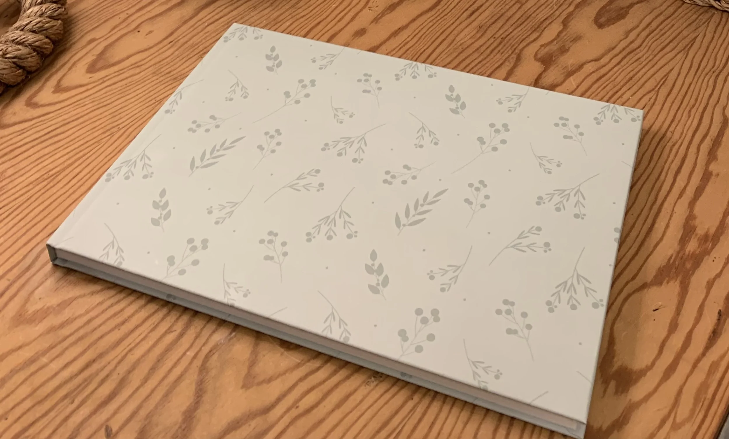 Haz click aquí para ver este álbum con estampado de hojas en verde en tamaño mediano y forma apaisada.